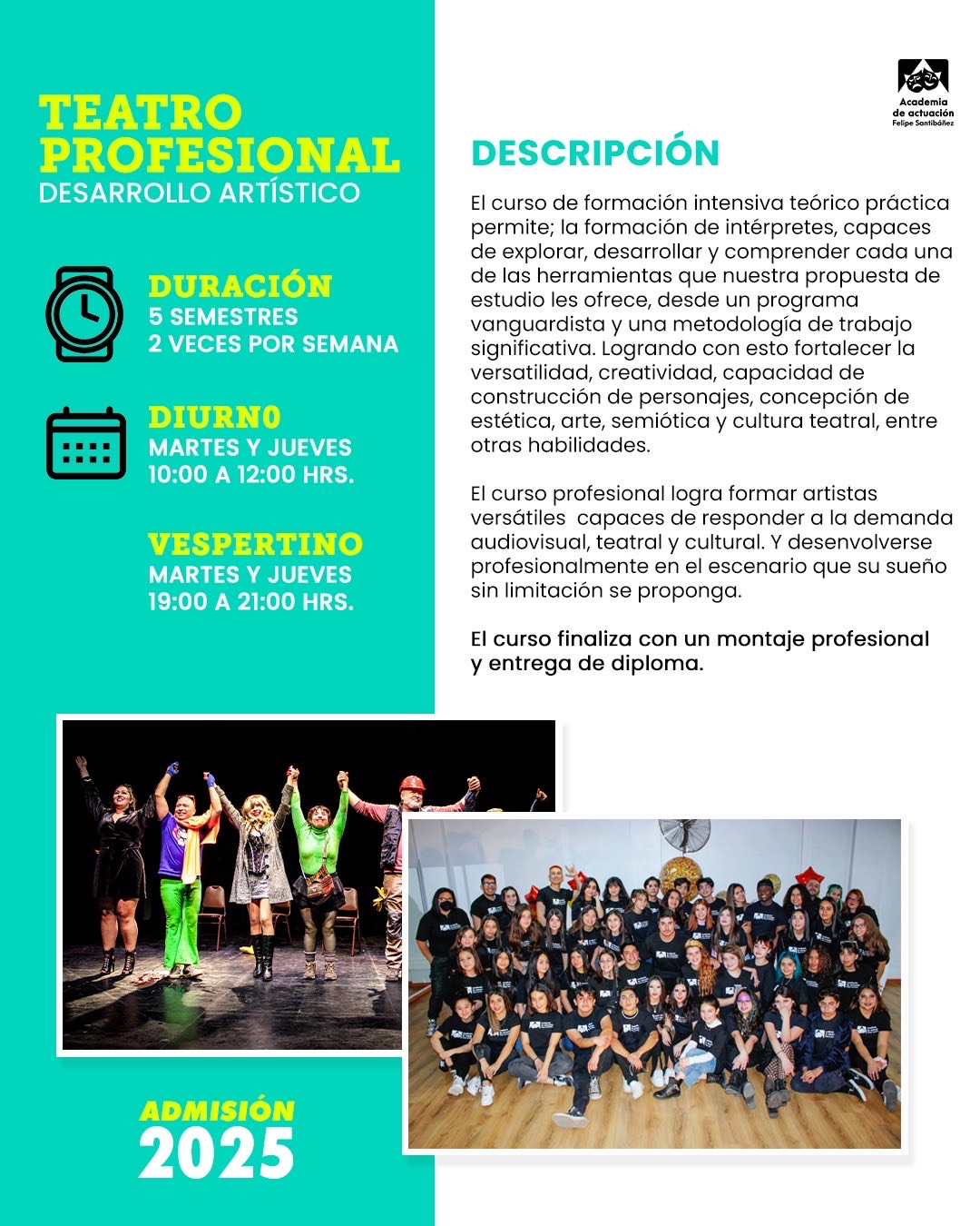 Academia de actuación Fernando González, licenciado en artes de la Udla y actualmente cursa un magister de docencia superior en la universidad mayor.